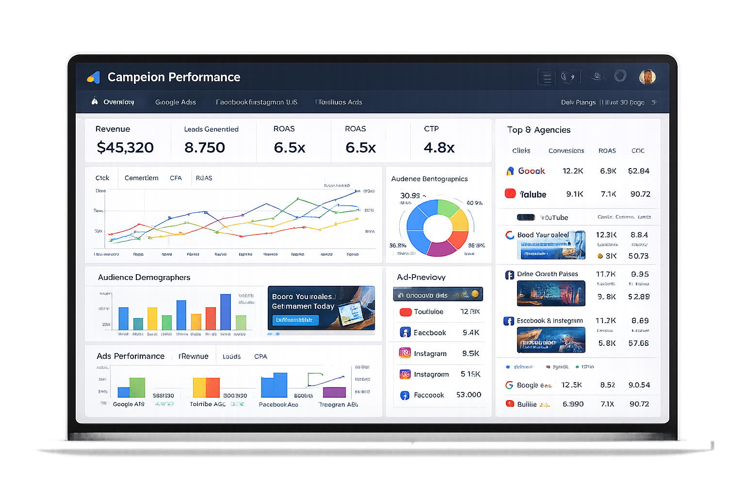 We help businesses scale with high-converting ad strategies, AI-powered creatives, and data-driven marketing systems. Your trusted partner for performance advertising and growth.